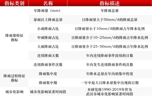 綜合考慮降雨量、降雨過程、城市化影響等因素,課題組構建了一套多維度的降雨特征指標體系,在武漢及其他長江中下游地區平原型城市中具有較好的適用性。