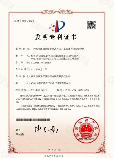 最終,項目組梳理了降雨典型年比選的方法,并申報獲批了國家發明專利。