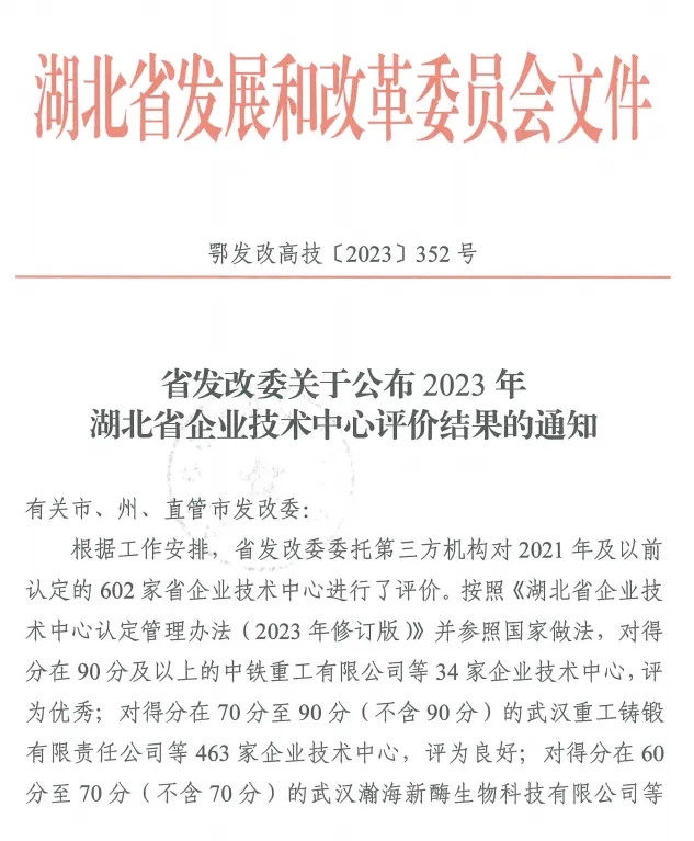 完成湖北省發改委組織的省企業技術中心三年評價并獲評“良好”