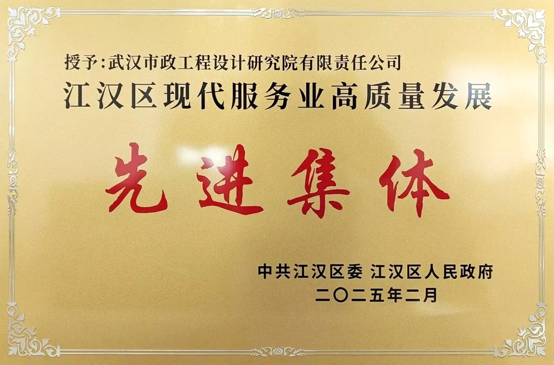 ? ? 近日,江漢區召開加快現代服務業高質量發展大會,表彰轄區企業和企業家在推動江漢區高質量發展中做出的突出貢獻。武漢市政院榮獲“現代服務業高質量發展先進集體”榮譽稱號,成為獲得此項殊榮的3家設計企業之一。