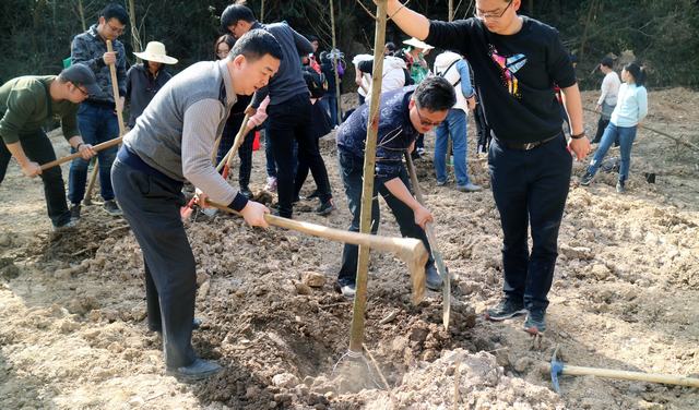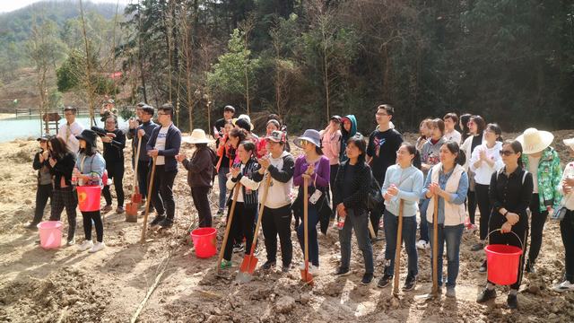 蔡輝為活動致辭,他肯定了此次植樹拓展活動的重要意義,希望大家在工作生活之余不要忘記承擔社會責任,并勉勵大家要在公司轉型發展時期展現出更加飽滿和積極向上的精神面貌。隨后,志愿者們拿起鋤頭、鐵鍬、水桶,在工作人員的指導下挖坑、植樹、培土、澆水、固定,將一棵棵樹苗植入土里。大家熱情高漲,你挖我栽,互相配合,30余棵樹苗已經栽種完畢。大家合力豎立起“武漢市政工程設計院愛綠護綠植樹林”標識牌,并與之合影留念。