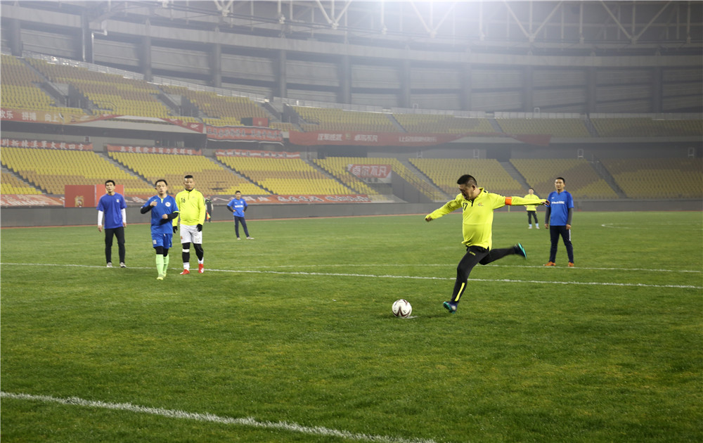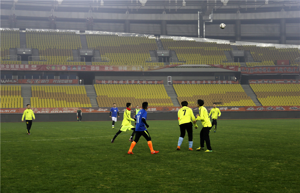 五環體育中心是武漢市為舉辦第七屆世界軍人運動會新建的規模最大的比賽場館,曾承擔了軍運會足球、乒乓球、水上救生等項目的比賽。盡管軍運會已經過去近三個月了,但如今置身其中,仍然能感受到軍運賽事帶來的澎湃與激情?;蛟S這種情緒也感染著場上的隊員們,他們從一開始就迅速進入了比賽狀態,身穿藍色球衣的東西湖區聯隊在開場不久便率先破門攻入一球,但公司的隊員們仍然穩扎穩打,很快就將比分扳平。重回同一起跑線的兩隊在隨后的比賽中更是你來我往,展開了高質量的攻防大戰,比分交替領先,最終雙方又各進四球,在一場精彩的進球大戰后以5:5的比分握手言和。