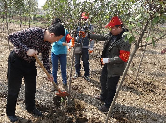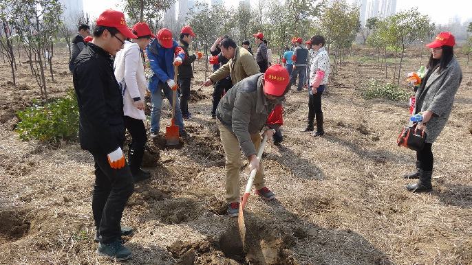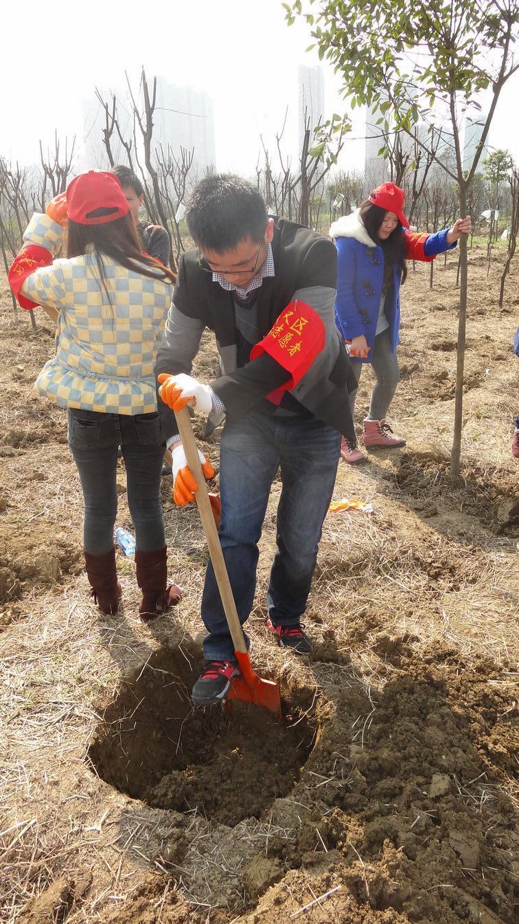 ??? 3月13日,公司的20余名青年志愿者在黨委書記蔡輝的帶領下,驅車前往竹葉海公園開展義務植樹活動。在工作人員的指引下,志愿者們來到了志愿者植樹基地,分發鐵鍬、水桶等工具,做好植樹準備。大家分工合作,有的挖樹坑,有的培土,有的提水。蔡書記手持鐵鍬,挖開樹坑,并為小樹苗細心培土。在他的帶領下,志愿者們熱情高漲,紛紛加快手中的動作,不一會,幾行郁郁蔥蔥的樹苗已經栽種完成。