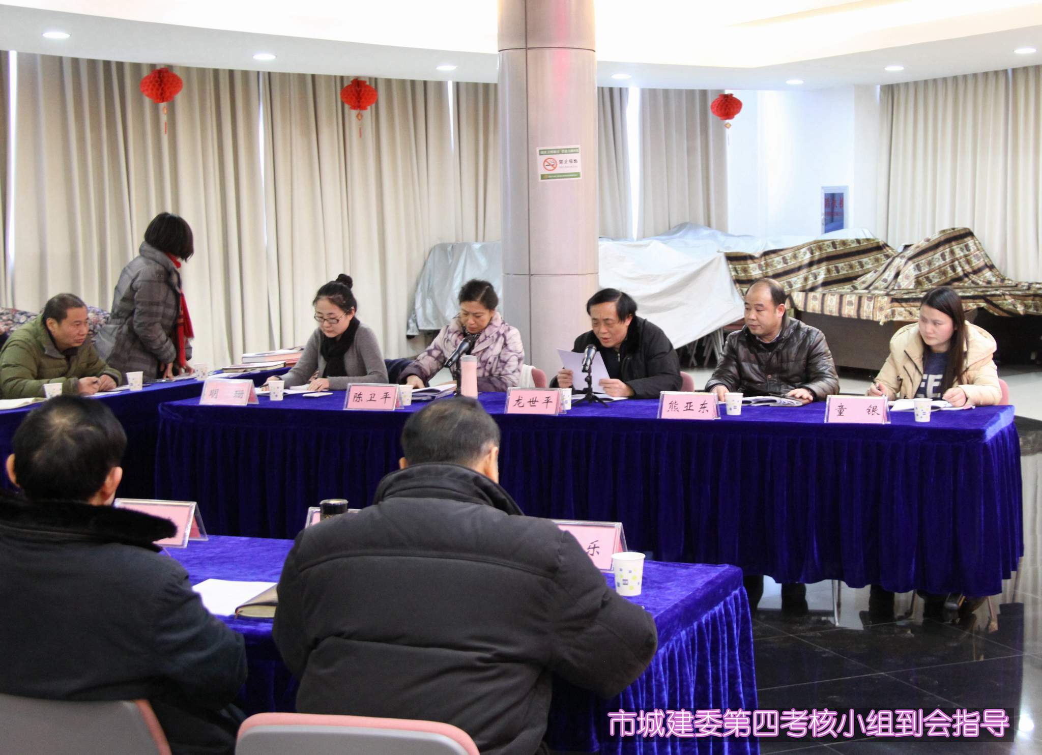 ??? 按照市城建委《關(guān)于做好2014年度直屬單位綜合考評(píng)工作的通知》要求及安排,2015年2月3日下午,市城建委第四考核組對(duì)公司領(lǐng)導(dǎo)班子和領(lǐng)導(dǎo)干部、績(jī)效目標(biāo)管理、基層黨建工作、黨的群眾路線(xiàn)教育實(shí)踐活動(dòng)整改項(xiàng)目落實(shí)情況、落實(shí)黨風(fēng)廉政建設(shè)責(zé)任制、推進(jìn)懲治和預(yù)防腐敗體系建設(shè)、社會(huì)管理綜合治理六項(xiàng)工作進(jìn)行綜合全面考核。由市城建委總工程師龍世平、工會(huì)主任陳衛(wèi)平、辦公室副主任科員熊亞?wèn)|、建設(shè)工程節(jié)能處副主任科員明珊、市城建委績(jī)效管理工作專(zhuān)班干部童銀組成的第四考核小組到場(chǎng)指導(dǎo),公司領(lǐng)導(dǎo)班子、總經(jīng)理助理、黨支部書(shū)記、部門(mén)負(fù)責(zé)人參加了會(huì)議,會(huì)議由蔡輝書(shū)記主持。