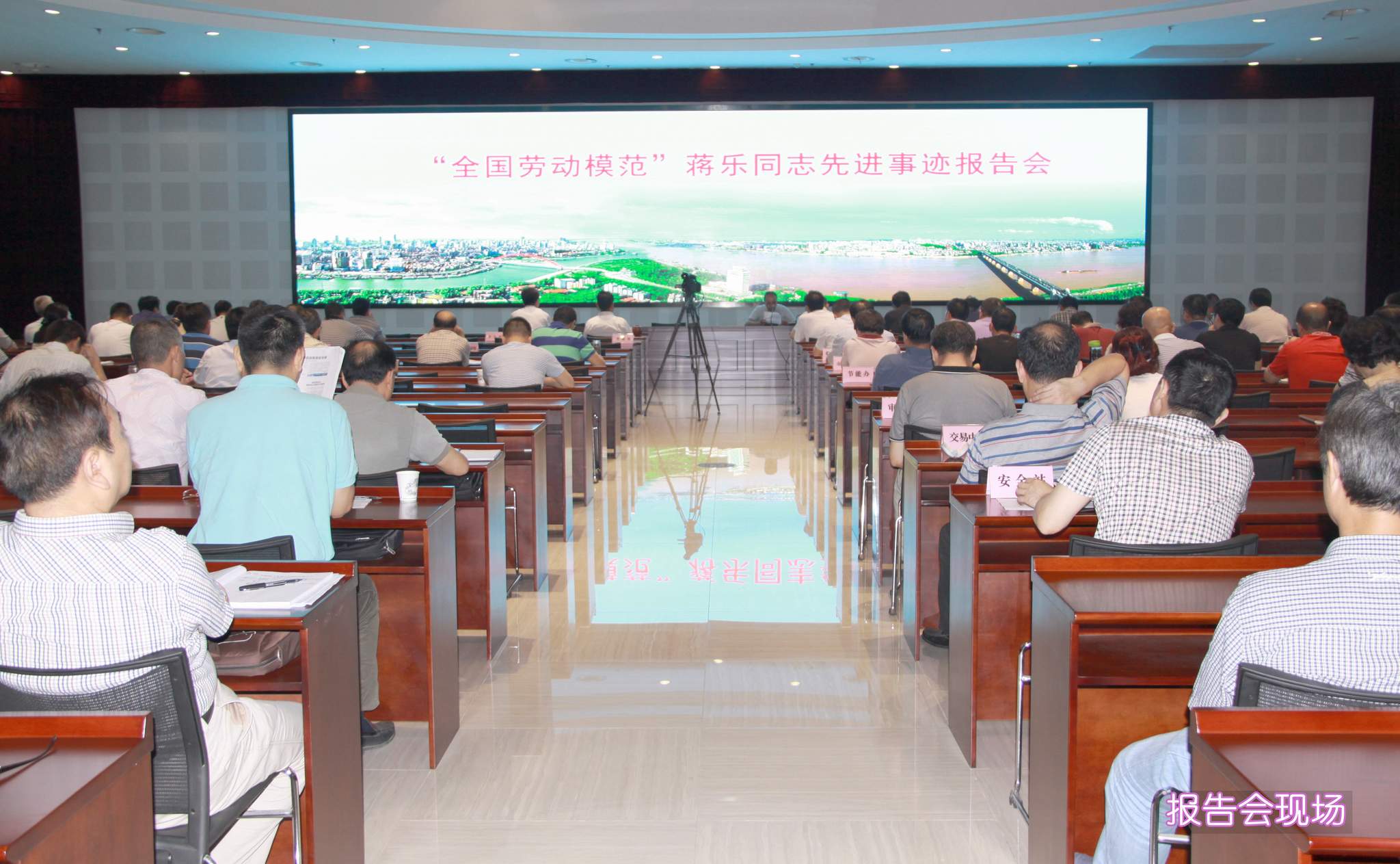 ??? 6月26日上午,市城建委一樓報告廳氣氛莊嚴,座無虛席,“全國勞動模范”蔣樂同志先進事跡報告會在這里舉行,來自全市城建系統的近兩百名工作者參加了大會,市城建委彭浩主任等領導出席大會,公司領導、黨支部書記參加了會議。