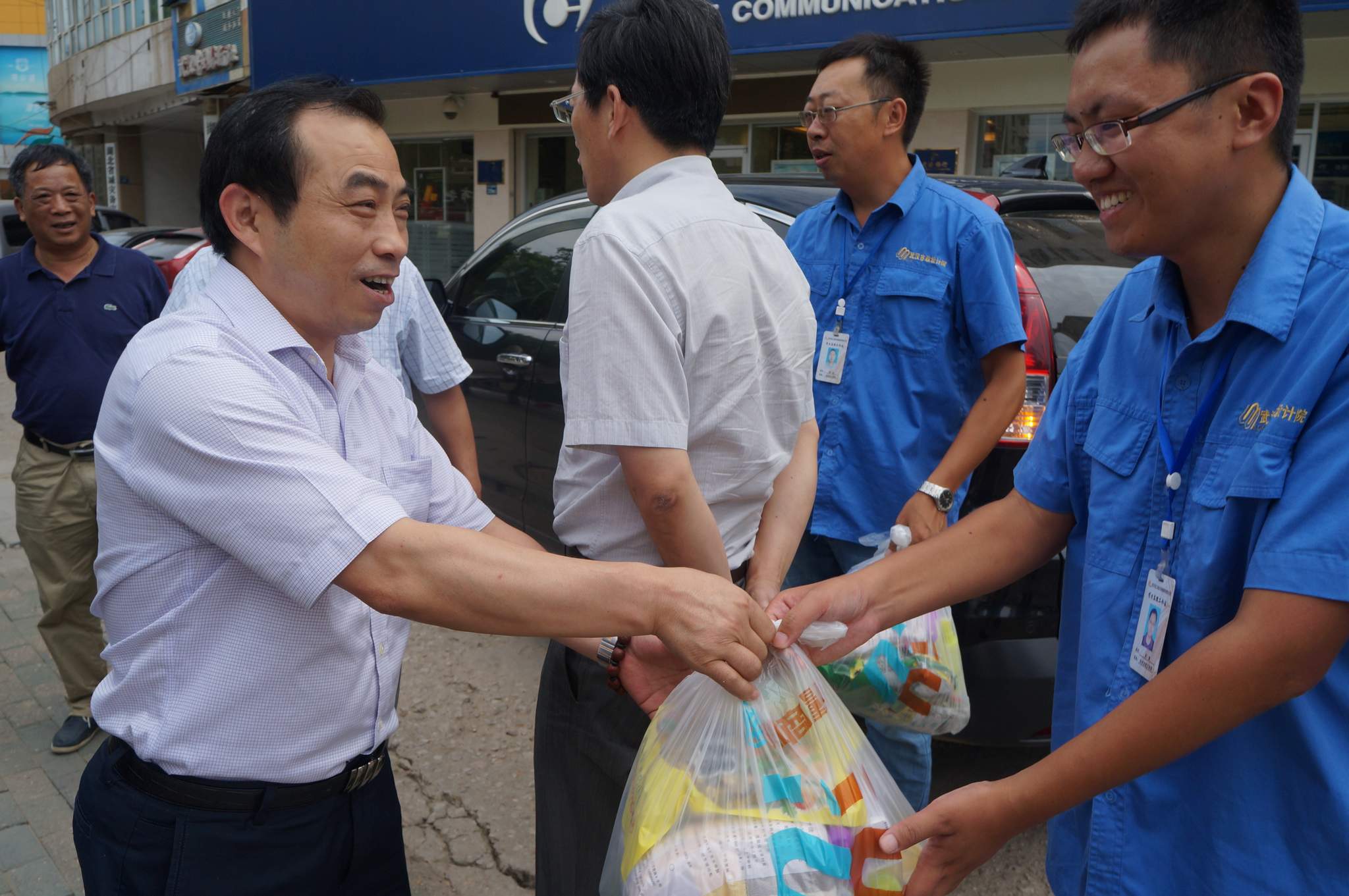 ??? 8月5日,公司總經理姚華、副總經理趙世杰帶領綜合辦公室、監理公司、勘測設計院等部門負責人,對部分工地進行了走訪慰問,為高溫下堅持工作的一線員工送上一份清涼。