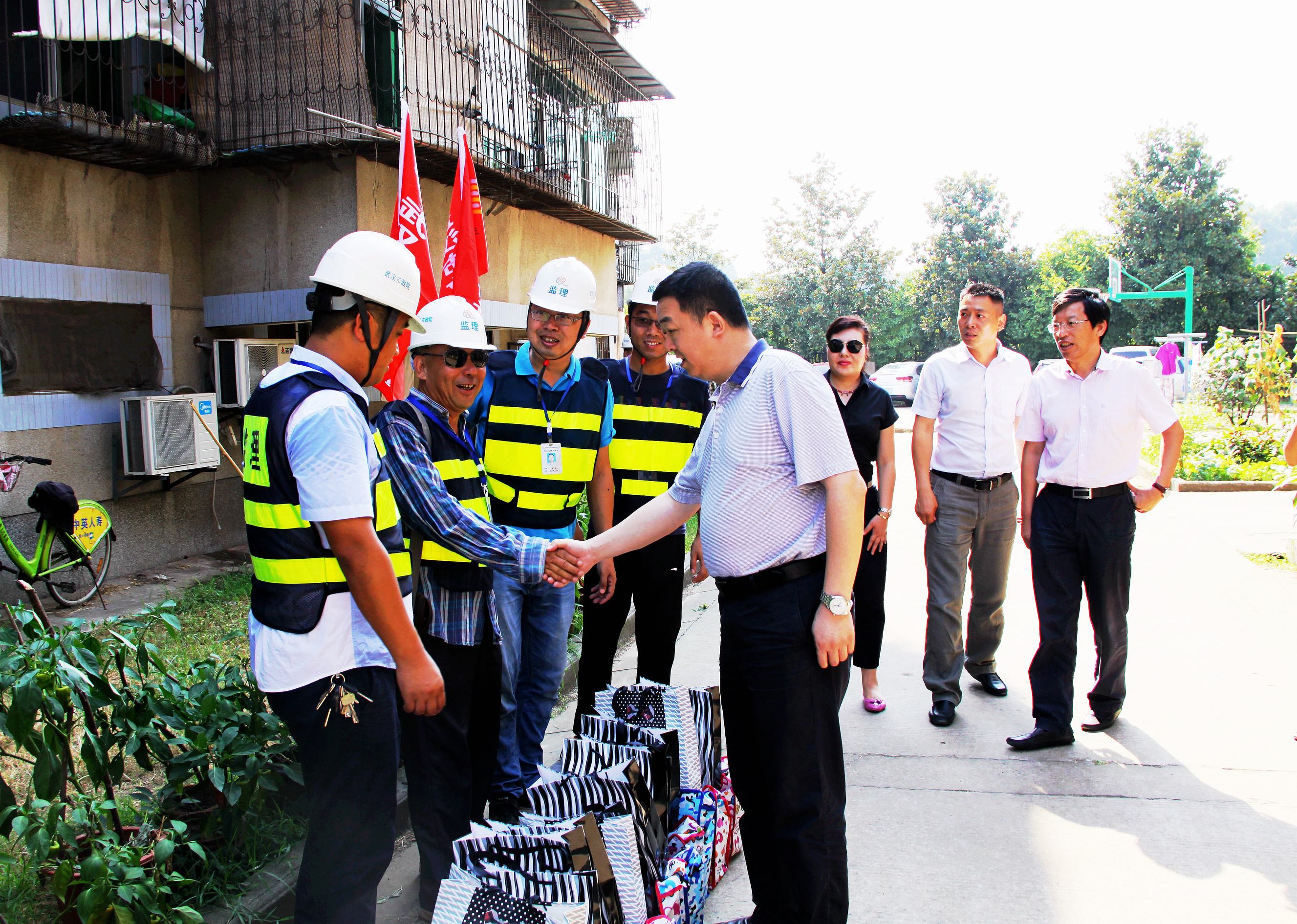 ??? 近日,武漢市遭遇了連續高溫酷暑天氣,氣溫逼近40度,而公司的勘察、監理、檢測、代建等部門還在高溫中堅持作業,以確保建設項目按期竣工。7月26日,公司黨委書記蔡輝、紀委書記兼工會主席趙世杰,以及勘察、監理、檢測、代建等部門負責人一行深入工程現場,慰問高溫作業員工,為他們送上了清涼消暑用品。