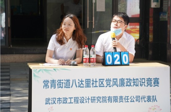 6月8日上午,江漢區人大代表、武漢市政設計院黨委副書記、總經理陳建斌帶隊到共建常青街道八達里社區實地走訪調研,收集社情民意,共同探討共建事宜。同時,組織黨員列席參加了社區“支部主題黨日”廉政知識競賽活動。武漢市政設計院作為參賽方與江漢區房管局、武漢市交通運輸局客運中心、武漢市航側實業有限公司等6家單位代表隊共同參加本次競賽,并最終榮獲一等獎。